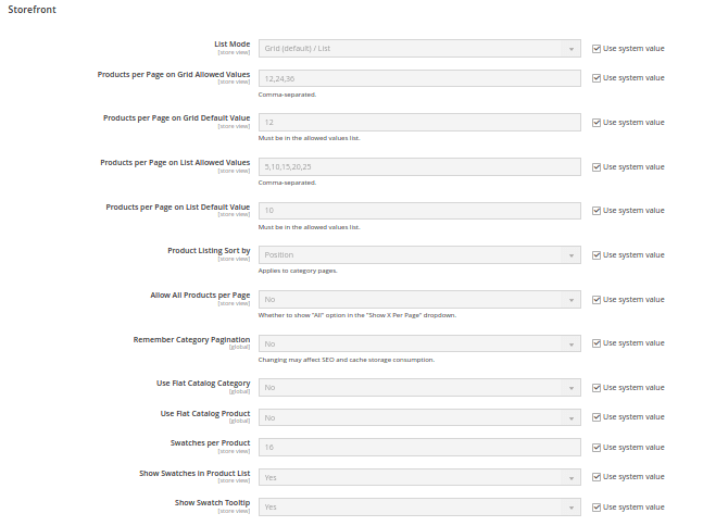 - Products per page on list default value:- Enter the default number you want to set as the product the page displays in the list.