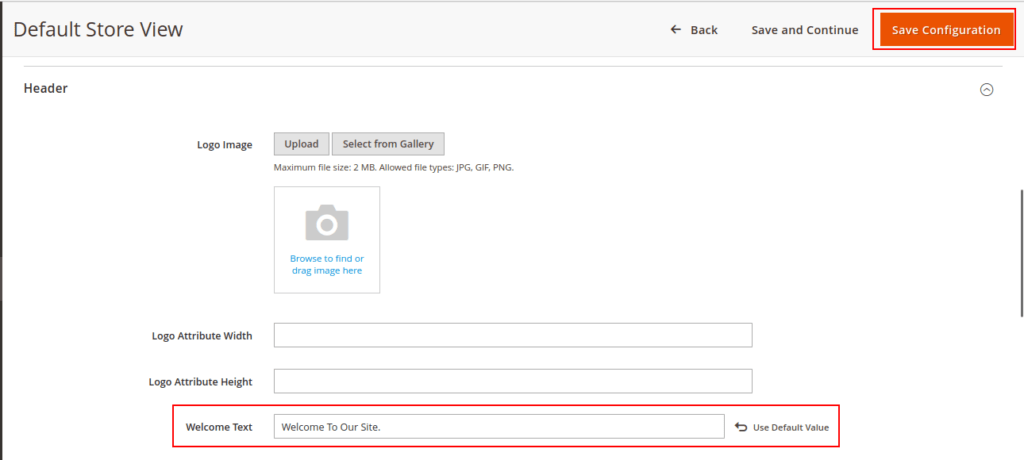 Step 3: Edit the store view for which you want to change the default welcome message in Magento 2 store. Then after, expand the Header section.